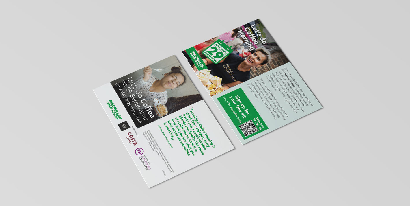 Macmillan’s Coffee Morning is a campaign that runs annually to encourage fundraising to support those living with cancer. The campaign required social media assets, digital display assets, printed materials, sign-up packs, OOH and TV.